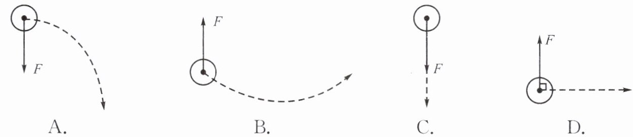 10. 若小球在运动过程中只受到力F的作用,且运动过程中力F始终保持不变,则下列小球的运动轨迹示意图(用虚线表示)中,不可能的是(
