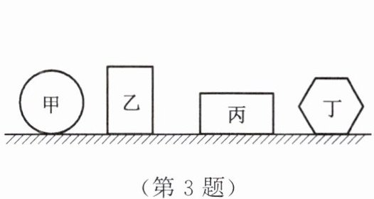 3. 如图所示,质量相等但形状不同的四个物体甲、乙、丙、丁放在水平桌面上。对桌面压强最大的是(