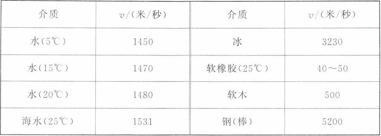 |介质| $ v/(米/秒) $|介质| $ v/(米/秒) $|