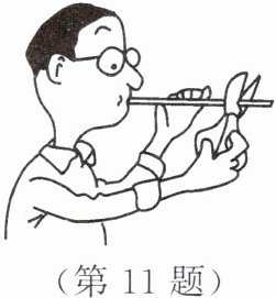 11. 如图所示,某人用相同的方式吹一根吸管,在不断剪短吸管的过程中,他听到的声音越来越高。他是在研究(