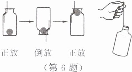 6. 如图所示,将弹性球和绳子先后放入瓶子中。倒置瓶子,一手拿着瓶子一手拉动绳子,直到绳子处于拉紧状态。将瓶子放正后,手拉绳子就可以将瓶子提起来。下列分析中,正确的是(