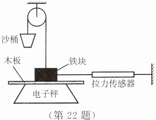 22. 学习影响滑动摩擦力大小的因素后,小柯还是认为:重力越大,滑动摩擦力越大。于是张老师用如图所示的装置与他一起做实验。