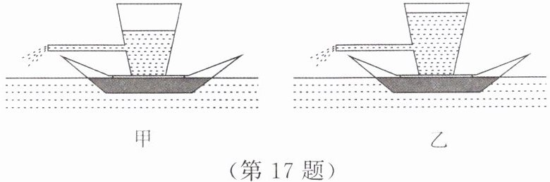 17. 将纸餐盘、纸杯和吸管按照如图所示的方式粘在一起,制成“纸杯船”。