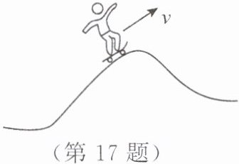 17. 滑板是一项具有一定刺激性的运动,滑滑板时要注意安全。如图所示,当小柯以速度v冲到斜坡的最高点时,若外力全部消失,则小柯与滑板将(