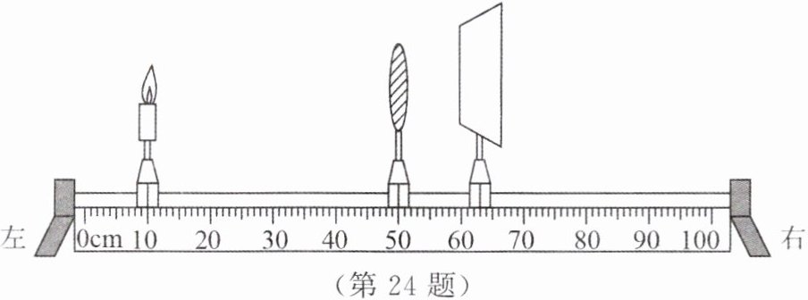 24. 在“探究凸透镜成像规律”的实验中,凸透镜的焦距为10厘米,位置固定不动,此时光屏(由毛玻璃制成)上有清晰的像。
