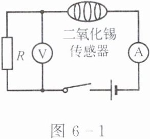 二氧化锡传感器能用于汽车尾气中一氧化碳浓度的检测,它的原理是其中的电阻随一氧化碳浓度的增大而减小。将二氧化锡传感器接入如图6-1所示的电路图中,则当二氧化锡传感器所处空间中的一氧化碳浓度增大时,电压表示数U与电流表示数I发生的变化是(