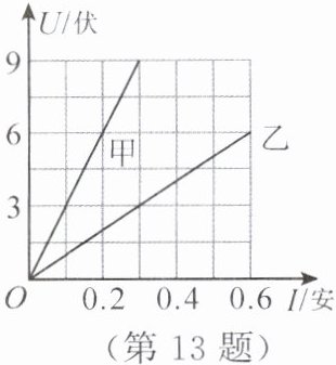 13. 如图所示为甲、乙两个电器元件的电流与电压的关系图。