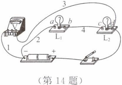 两端的电压。若要使电压表测量电灯 $ L_1 $ 两端的电压,只需将导线3