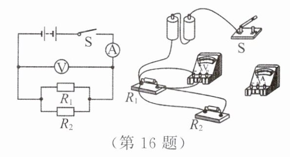 16. 学习了并联电路的特点和欧姆定律后,科学兴趣小组为了研究并联电路总电阻和各分电阻之间的关系,进行了以下实验。