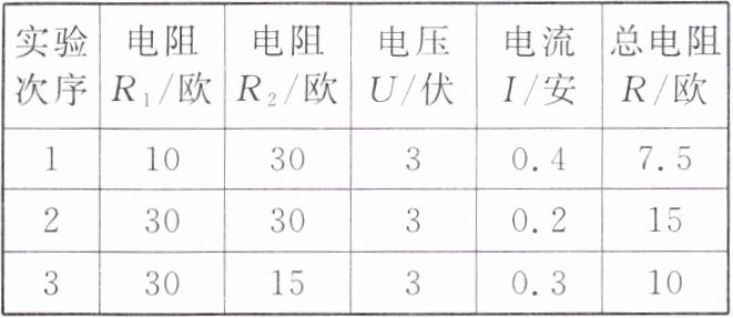 (3) 分析表中数据,若增大其中一个分电阻的阻值,则总电阻将______。