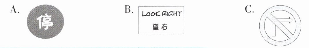 )6. When you see this in the street, you can’t turn right.