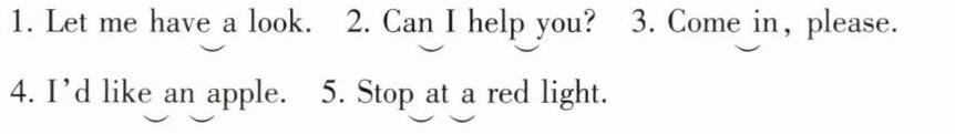 例:1. Let me have a look. 2. Can I help you? 3. Come in, please.