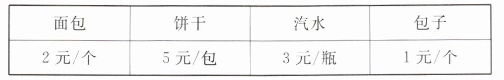 (1) 买 5 个面包和 1 瓶汽水应付______元。