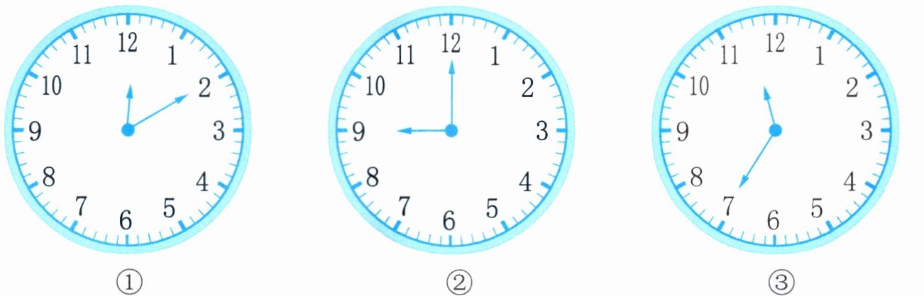 2. 时针与分针形成了什么角?比一比,填一填。(填序号)