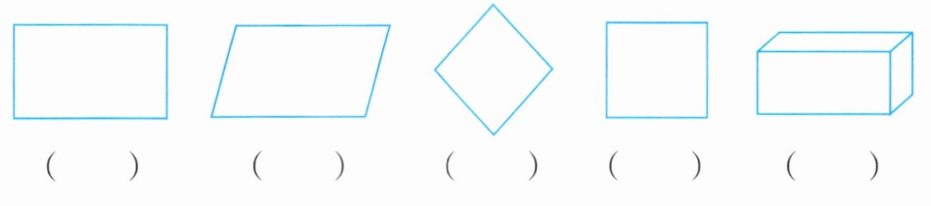 4. 下列图形中,是长方形的画“√”,是正方形的画“○”。
