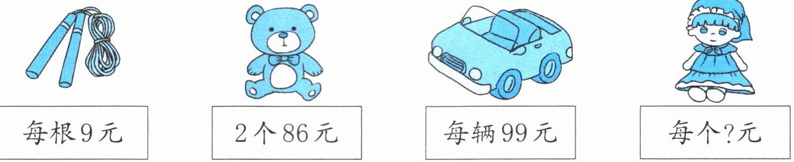 (3)买7根跳绳的钱刚好可以买3个布娃娃,每个布娃娃多少元?