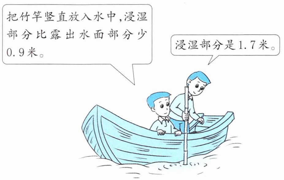 1. 露出水面部分:1.7 + 0.9 = 2.6(米)