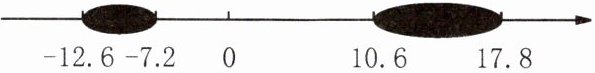 8. 小红在做作业时,不小心将两滴墨水洒在一个数轴上,如图,根据图中标出的数值,判断墨水盖住的整数有哪几个.