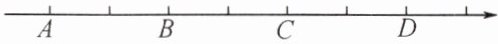 12. 如图,已知$A$,$B$,$C$,$D$四个点在一条没有标明原点的数轴上。