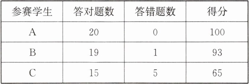 |参赛学生|答对题数|答错题数|得分|