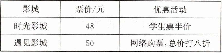 3. 周末,小康一家和姑姑一家(共 6 人)相约一起去观看电影《流浪地球 2》.小康用手机查到家附近两家影城的票价和优惠活动如下: