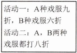 (2)学校计划购买 $35$ 套戏服,商店推出以下两种促销活动,如图所示,根据以上信息,学校怎么安排购买方案,才能使不论参加哪种活动,所需的费用都相同?