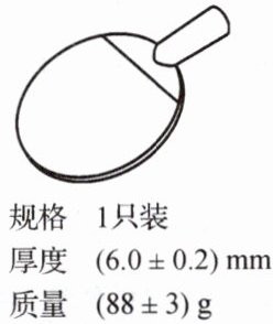 mm.(3)小伟从线上购买这种球拍一只,测得其厚度为6.1mm,质量为84g,则他所买球拍是否合格?