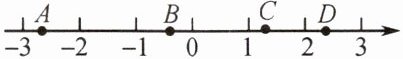 13. 如图,数轴上点$A$,$B$,$C$,$D$表示的数绝对值最小的是