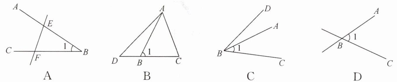4. 如图,能用 $ \angle 1 $、$ \angle ABC $、$ \angle B $ 三种方法表示同一个角的是(