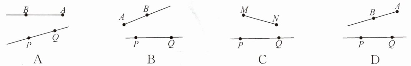 2. 直线 $ PQ $,射线 $ AB $,线段 $ MN $ 能相交的是(