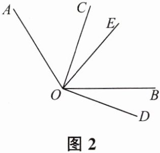 (2)如图 2,当 $ \angle COD $ 的边 $ OD $ 在 $ \angle AOB $ 外部时,且 $ 0^{\circ} < \angle BOD < 60^{\circ} $ 时,设 $ \angle COE = \alpha $,$ \angle BOD = \beta $,用等式表示 $ \alpha $ 与 $ \beta $ 之间的数量关系,并说明理由.