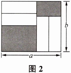 16. 把四张形状、大小完全相同的小长方形卡片(如图 1)不重叠地放在一个底面为长方形(长为 $ a $,宽为 $ b $)的盒子底部(如图 2),盒子底面未被卡片覆盖的部分用阴影表示,则图 2 中两块阴影部分的周长和是
