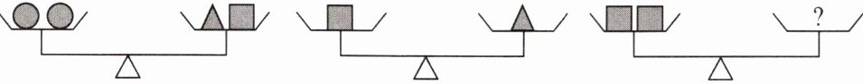 10. 设“●■▲”分别表示三种不同的物体,如图,前两架天平保持平衡,如果要使第三架天平也平衡,那么“?”处应该放“●”的个数为