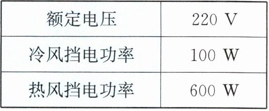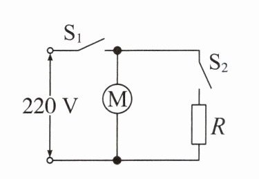 7. 某电吹风机的铭牌信息及原理图如下。当$S_{1}和S_{2}$都闭合时,电吹风机吹热风,则两条支路电流之比为(