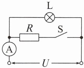9. (2024·山东济宁中考)在如图所示的电路中,电源电压为$6\ V$。当开关$S$闭合后,电路总功率变化了$1.8\ W$,则电流表示数变化了