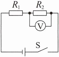 【典型例题】(2024·安徽中考)如图所示,电源两端电压为$6\ V$,电阻$R_{2} = 20\ \Omega$。闭合开关$S$,电压表示数为$4\ V$,则通电$100\ s$整个电路产生的热量为