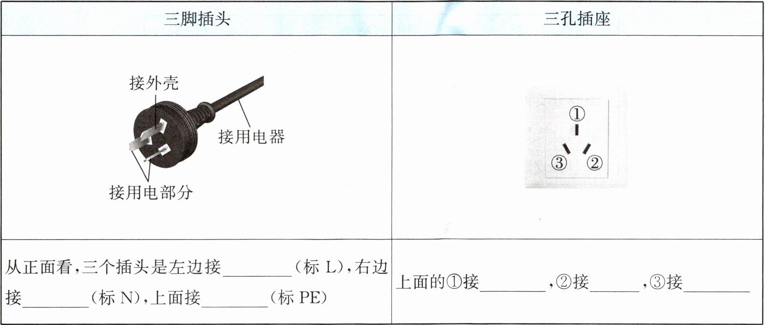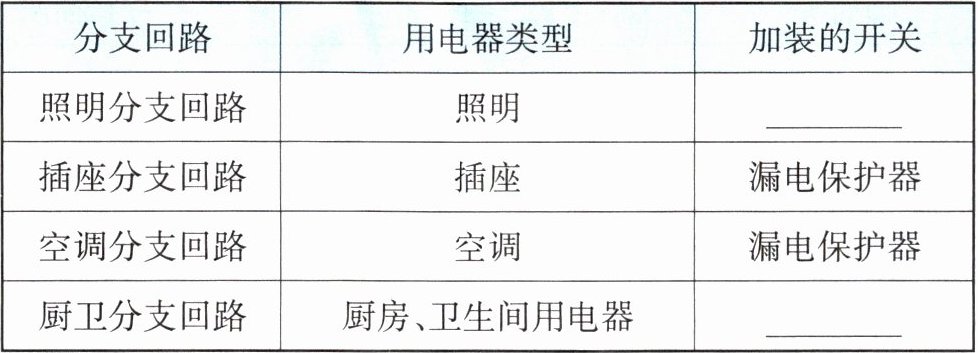 1.电能表 总开关(含保险装置) 插座 2.相线、中性线 220 V 进户线 电能 相线 相线 并联 3.空气开关 漏电保护器