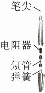 (2) 构造:如图所示,由笔尖、电阻器、氖管、弹簧等组成。