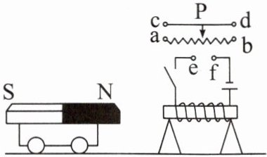 5. 如图所示,将条形磁体固定在静止的小车上,电路连接完整后,闭合开关时,小车不动。滑动变阻器的滑片P向左移动到某位置时,小车开始向左运动,则下列滑动变阻器接入电路的方式正确的是(