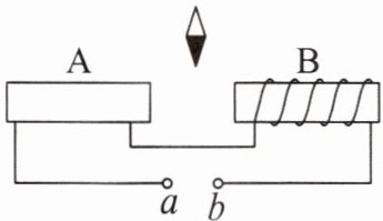 8. 如图所示的A、B为两个通电螺线管,a、b之间是电源,通电时小磁针(黑端为N极)能在图示位置静止。标出电源的正、负极及通电螺线管A的线圈绕法。