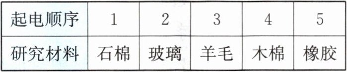 2. 不同物质的原子核对电子的束缚本领不同,科学家通过实验得出起电顺序表,表中任意两种物体相互摩擦时,次序在前的带正电,次序在后的带负电。根据表格,下列判断正确的是(