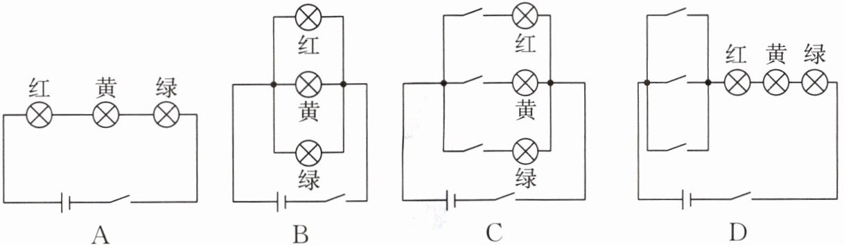 (2)小宇在课后设计了几个实验电路,如图所示,可以正确模拟红绿灯工作的是(