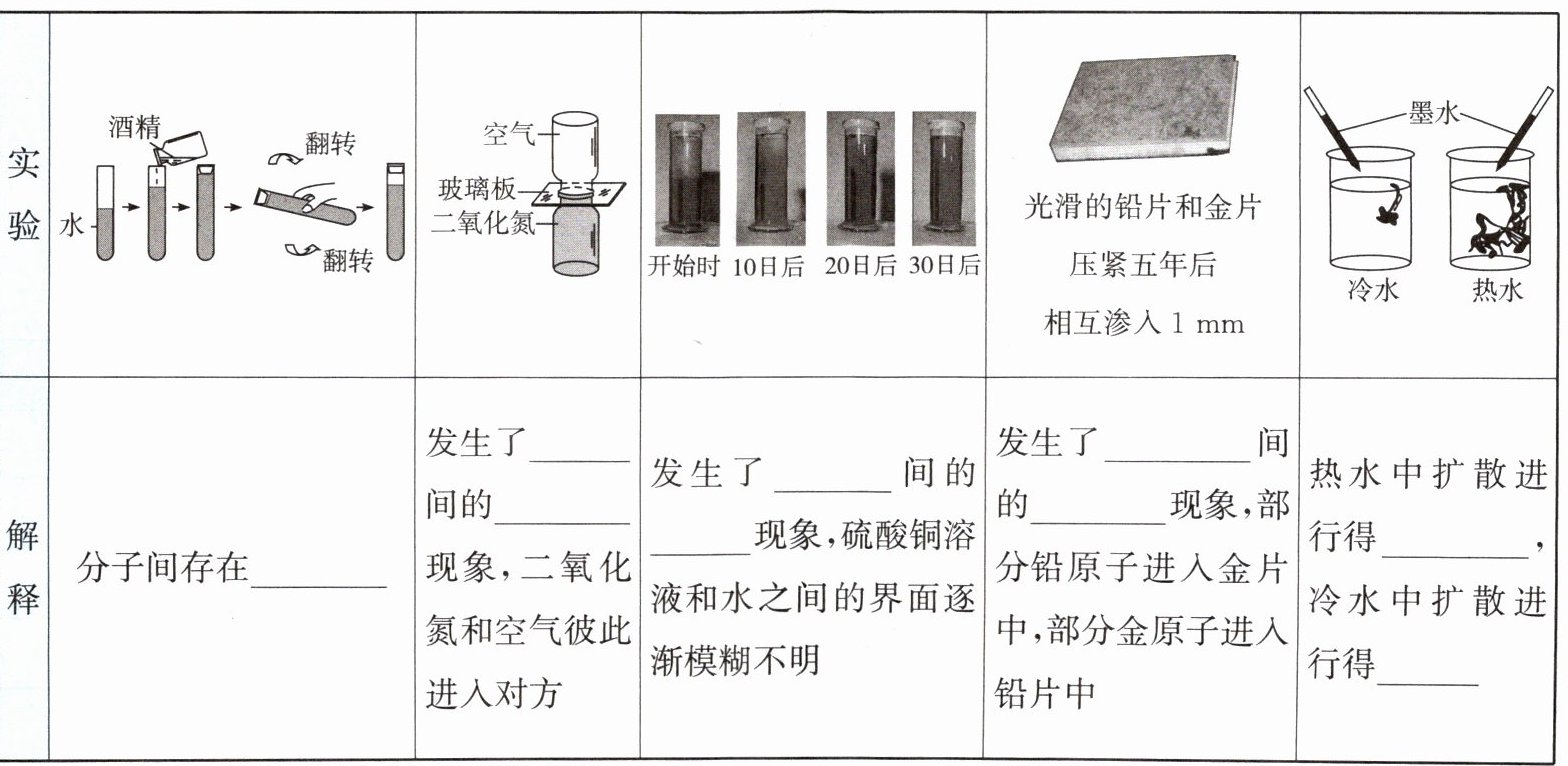 的现象,叫作扩散。3. 扩散可以在气体、液体之间发生,也可以在固体之间发生。
