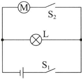 (4)2024 年 11 月 1 日起,电动车迎来新规,新规要求电动车上路时,骑行和搭乘人员必须佩戴安全头盔,车主在选择头盔时一定要选择 3C 认证的产品。项目式学习小组的同学们想为共享电动车设计智能戴头盔系统:骑行前,扫码成功后,开关 $ S_1 $ 闭合,指示灯 $ L $ 亮,但电动机不工作;从车上取出头盔戴上后,头盔内遥控设备控制开关 $ S_2 $ 闭合,电动机才通电工作;若只戴头盔、不扫码,则车无法骑行。请你在虚线框内设计符合条件的电路图。