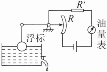 6. 右图是一种自动测定油箱内油面高度的装置,滑动变阻器的阻值为R,它的金属滑片是杠杆的一端,且由于定位挡板的限制,只能在滑动变阻器上滑动。从油量表(由电流表改装而成)指针所指的刻度,就可以知道油箱内油面的高度。已知电流增大时,油量表指针向右偏转,则(