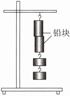 4. 如图所示,将两个表面光滑的铅块相互紧压,它们会粘在一起,下方可以挂起重物。该现象主要说明了(