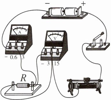 【典型例题】(2024·黑龙江齐齐哈尔中考)在伏安法测电阻的实验中,老师准备了阻值未知的定值电阻、电压表、电流表、两节新干电池、开关、导线若干、滑动变阻器(铭牌上标有“$ 20 \, \Omega \, 1 \, A $”)等器材。所有器材均完好。