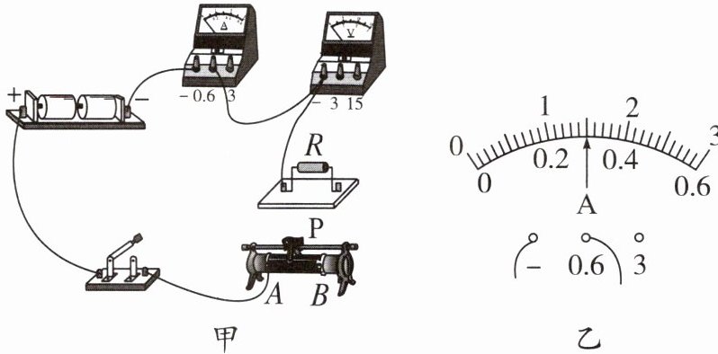 (3)排除故障后闭合开关,移动滑片使电压表示数为$ 2.4 \, V $,电流表示数如图乙所示,示数为