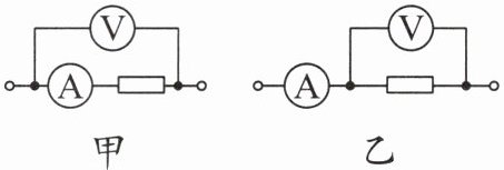 5. 我们常把电流表看作导线,把电压表所在位置看作断路,实际上电流表和电压表都有电阻。电流表的电阻很小,接近于导线的电阻;电压表的电阻很大,大约为几千欧,在实际情况下,其所在位置不能看作断路。用电流表和电压表测电阻时,电压表和电流表有如图所示的两种接法。关于这两种接法,下列说法正确的是(