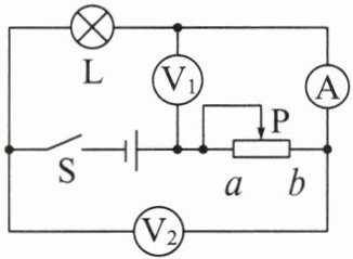 2. 如图所示的电路中,电源电压保持不变,当闭合开关 $ S $ 后,滑动变阻器的滑片 $ P $ 自 $ a $ 端向 $ b $ 端移动的过程中,电流表 $ A $ 的示数